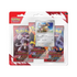 Each blister comes with 3 Destined Rivals booster packs and a promotional card of Zebstrika or Kangaskhan.